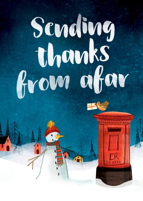 Gezellige bedanktkaart met illustratie en de tekst: Sending thanks from afar