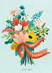 Fleurige bedanktkaart met aanpasbare naam en illustratie van een bos bloemen.
