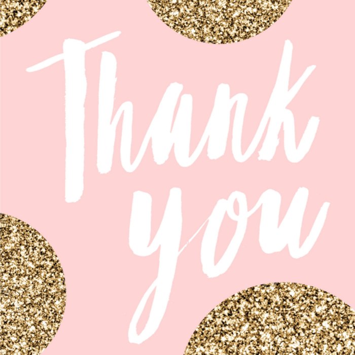 Leuke, roze bedanktkaart met de tekst: Thank you