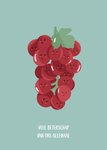 Schattige beterschapskaart met een druiventros op de kaart met de tekst: Veel beterschap van ons allemaal.