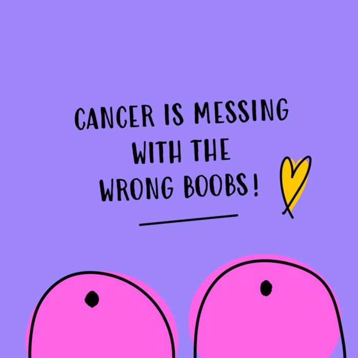 Niets is zo erg om ernstig ziek te zijn. Stuur daarom als steun een mooie beterschapskaart van Greetz. Op deze kaart staat: cancr is messing with the wrong boobs!