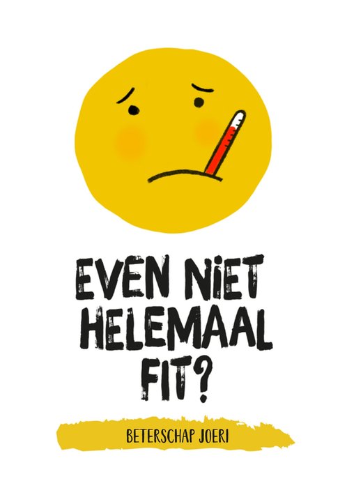 Wens iemand beterschap met deze smiley kaart. Op de kaart staat: Even niet helemaal fit? Beterschap [naam]
