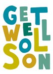 Kleurrijke beterschapskaart met de tekst: Get well soon.
