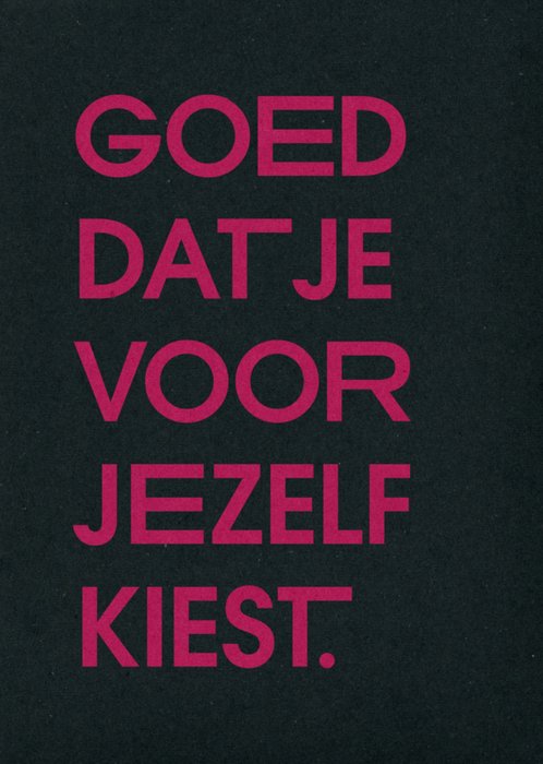 Beterschapskaart met de tekst: Goed dat je voor jezelf kiest.