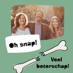 Ken jij iemand die iets gebroken heeft? Stuur dan deze leuke kaart. Op deze kaart zie je een bot en de tekst: oh snap, veel beterschap. Ook kun je een foto toevoegen.