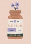 Laat weten dat je aan iemand denkt met dit schattige kaartje met de tekst: Rest & Relax get well soon. De naam is aanpasbaar.