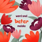 Wens iemand beterschap met deze mooie kaart van Dami Draws. Op de kaart staat: Word snel beter meiske.