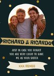Op deze broer- en zus dag kaart kun je een leuke foto toevoegen en je broers of zussen mee verrassen. De namen zijn aanpasbaar.