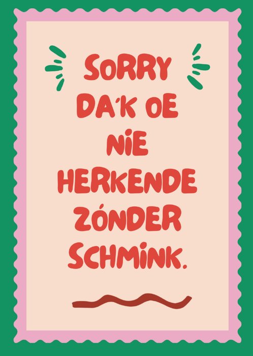 Verras met deze vrolijke Carnaval kaart met de grappige tekst "Sorry da'k oe nie herkende zónder schmink"