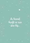 Op deze condoleancekaart staat: De hemel heeft er een ster bij..