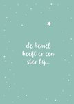 Op deze condoleancekaart staat: De hemel heeft er een ster bij..