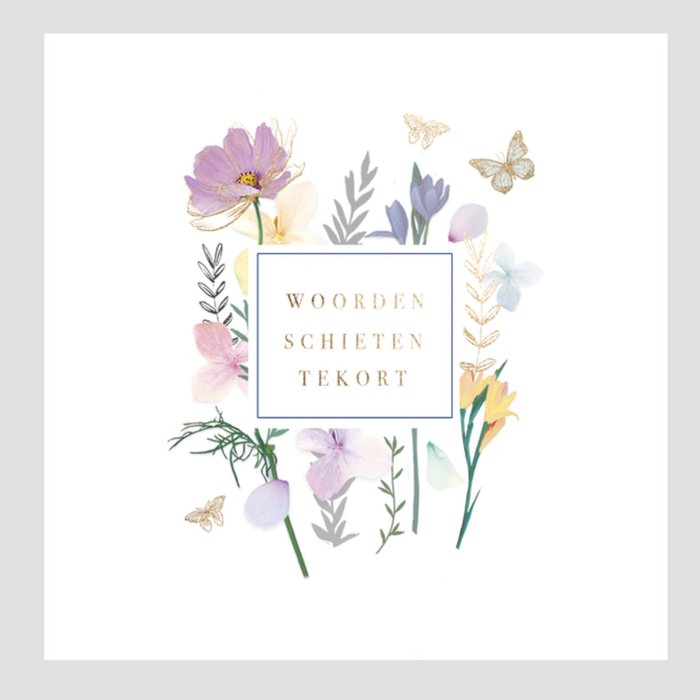 Mooie condoleancekaart met de tekst: Er zijn geen woorden voor dit grote verlies... veel sterkte gewenst.