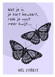 Mooie condoleancekaart met illustratie en de tekst: Wat je in je hart bewaart, raak je nooit meer kwijt... Veel sterkte