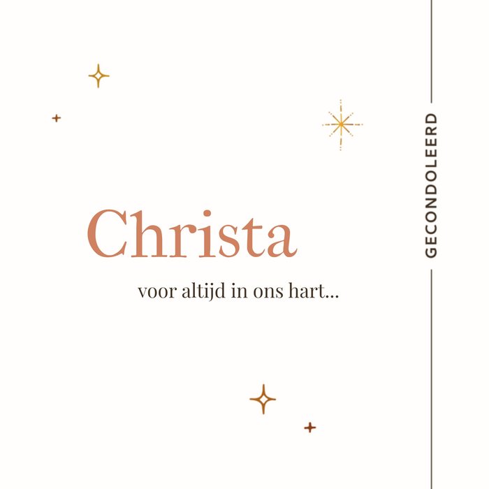 Wenskaart van Greetz ontworpen door Greetz designers, volgens de laatste trends. Voeg je eigen foto('s), tekst, & versiering toe om de kaart extra persoonlijk te maken. Je kunt de kaart toevoegen aan je favorieten of tussentijds opslaan om deze later af te maken. Meer condoleance kaarten zien? Check ze hier.