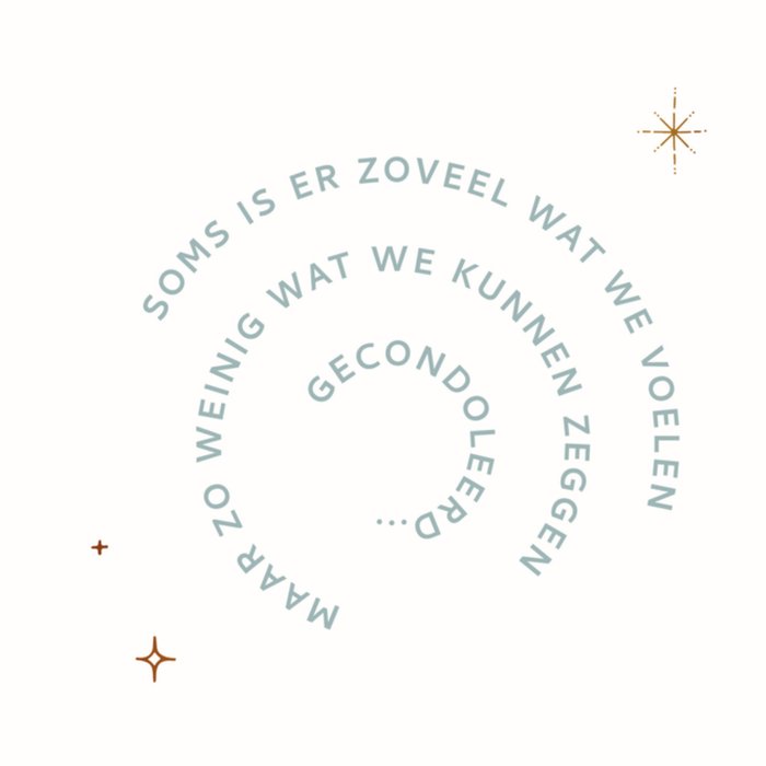 Mooie condoleancekaart met de tekst: Soms is er zoveel wat we voelen. Maar zo weinig wat we kunnen zeggen. Gecondoleerd...