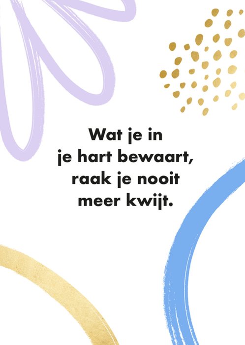 Mooie condoleancekaart met de tekst: Wat je in je hart bewaart, raak je nooit meer kwijt.