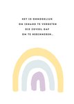 Een heel mooi kaartje om nabestaanden een hart onder de riem te steken bij verlies van een dierbare. Op het kaartje staat een pastelkleurige regenboog met daarbij de tekst: Het is onmogelijk om iemand te vergeten die zoveel gaf om te herinneren.