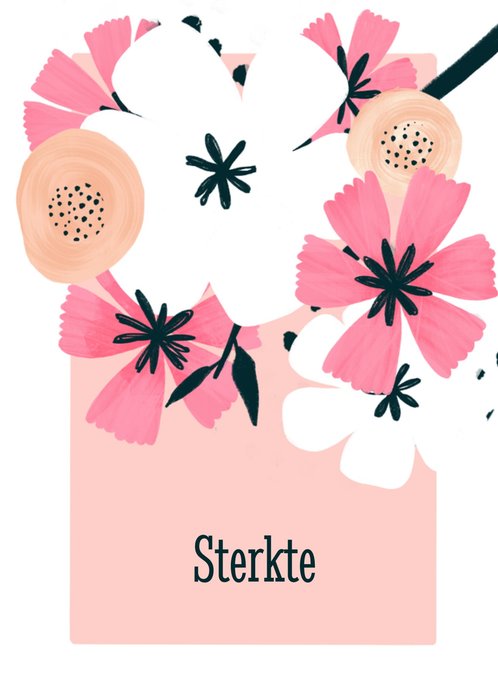Op deze mooie condoleance kaart met bloemen staat: Sterkte.