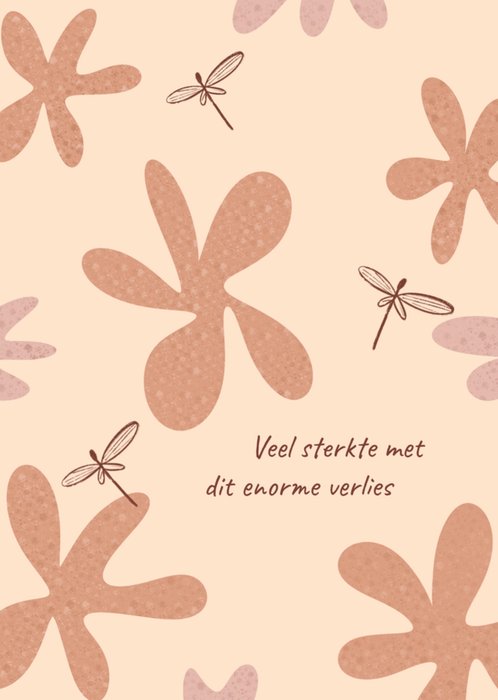 Stuur je steun op met deze condoleancekaart. Op de kaart zie je illustraties van bloemen en libellen. Met de tekst: Veel sterkte met dit enorme verlies. Voeg je eigen foto('s), tekst, & versiering toe om de kaart extra persoonlijk te maken. Je kunt de kaart toevoegen aan je favorieten of tussentijds opslaan om deze later af te maken.