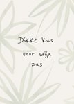 Mooie denken aan kaart die je naar je zus kan sturen met de tekst: Dikke kus voor mijn zus.