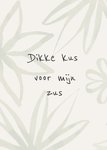 Mooie denken aan kaart die je naar je zus kan sturen met de tekst: Dikke kus voor mijn zus.