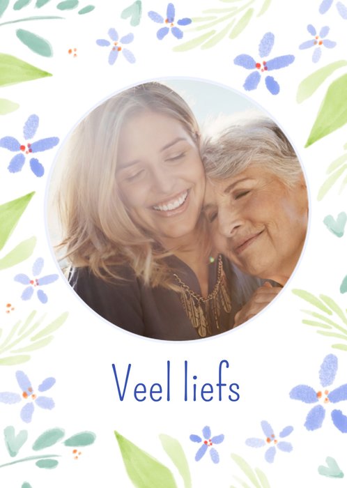 Laat weten dat je aan hem of haar denkt met dit liefdevolle kaartje met bloemen op de achtergrond. Maak de kaart extra persoonlijk met een eigen foto en tekst.