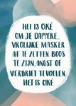 Het is niet altijd makkelijk. Laat weten dat je aan iemand denkt met een kaart. "Het is oké om je dappere, vrolijke masker af te zetten. Boos te zijn, angst of verdriet te voelen. Het is oké."
