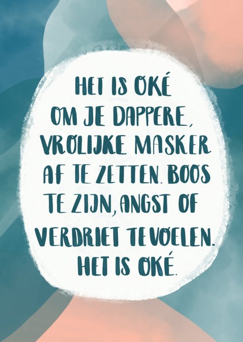 Het is niet altijd makkelijk. Laat weten dat je aan iemand denkt met een kaart. "Het is oké om je dappere, vrolijke masker af te zetten. Boos te zijn, angst of verdriet te voelen. Het is oké."