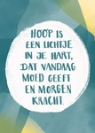 Een lieve kaart om te laten weten dat je aan hem denkt. "Hoop is een lichtje in je hart, dat vandaag moed geeft en morgen kracht."