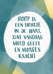 Een lieve kaart om te laten weten dat je aan hem denkt. "Hoop is een lichtje in je hart, dat vandaag moed geeft en morgen kracht."