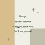 Leuke denken aan kaart om naar een vriend te sturen om te laten weten dat je aan hem denkt met de tekst: Maatje, ik weet niet wat te zeggen, maar weet dat ik aan je denk!