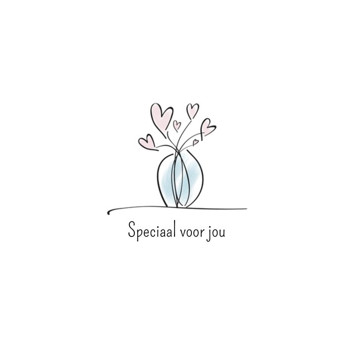 Zet iemand in het zonnetje met dit "speciaal voor jou" kaartje met een mooie tekening van een vaas met bloemen in de vorm van hartjes. De tekst op de kaart is aanpasbaar.