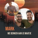 Leuke denken aan kaart om naar een vriend te sturen om te laten weten dat je aan hem denkt met de tekst: We denken aan je maatje. De naam is aanpasbaar en je kunt twee foto's toevoegen.