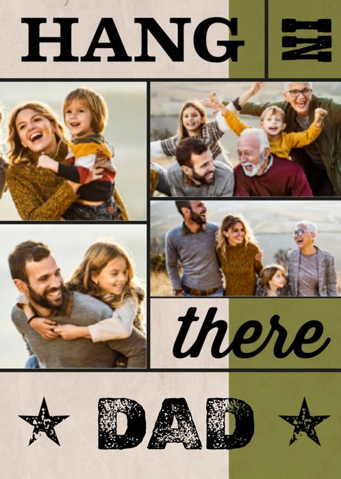 Leuke denken aan kaart om naar je vader te sturen met de tekst: Hang in there dad. Voeg verschillende leuke foto's toe.