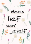 Lieve denken aan kaart met bloemen en de tekst: Wees lief voor jezelf.