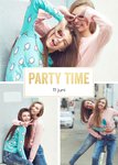 Is party time jouw favoriete uitspraak en heb je binnenkort iets te vieren? Dan is dit de uitnodiging voor jouw feestje. Op de uitnodiging staat de tekst 'Party time'.