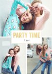 Is party time jouw favoriete uitspraak en heb je binnenkort iets te vieren? Dan is dit de uitnodiging voor jouw feestje. Op de uitnodiging staat de tekst 'Party time'.