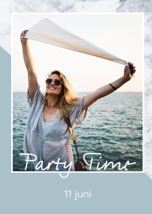 Verstuur deze hippe uitnodiging met marmer look and feel naar alle genodigden van jouw feestje. Het is namelijk Party Time!!