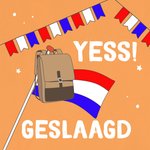 Oranje uitnodiging van Greetz voor een examenfeest. Op de trendy uitnodiging staat een tas die aan een vlaggenstok hangt.