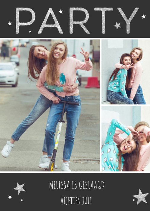 Trendy uitnodiging met eigen foto. De grijze uitnodig komt uit de Greetz collectie en op de voorkant kan een eigen naam en datum worden toegevoegd.