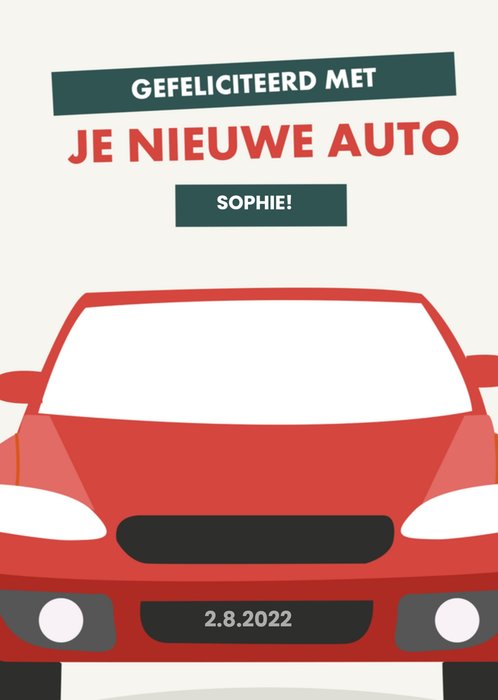 Feliciteer met deze leuke kaart van Greetz! Op de kaart staat een auto en de tekst: Gefeliciteerd met je nieuwe auto [naam].