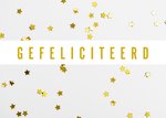 Feliciteer met deze leuke kaart van Greetz! Op de kaart zie je gouden sterren en de tekst: gefeliciteerd.