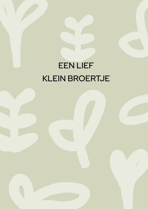 Schattige geboorte kaart met daarop verschillende tekeningen van plantjes en de tekst: Een lief klein broertje.
