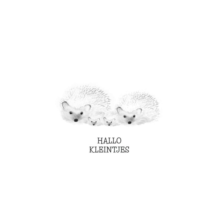 Minimalistisch geboortekaartje met egeltjes voor een tweeling.