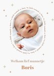 Wenskaart van Greetz ontworpen door Greetz designers, volgens de laatste trends. Voeg je eigen foto('s), tekst, & versiering toe om de kaart extra persoonlijk te maken. Je kunt de kaart toevoegen aan je favorieten of tussentijds opslaan om deze later af te maken. Meer geboortekaarten zien? Check ze hier.