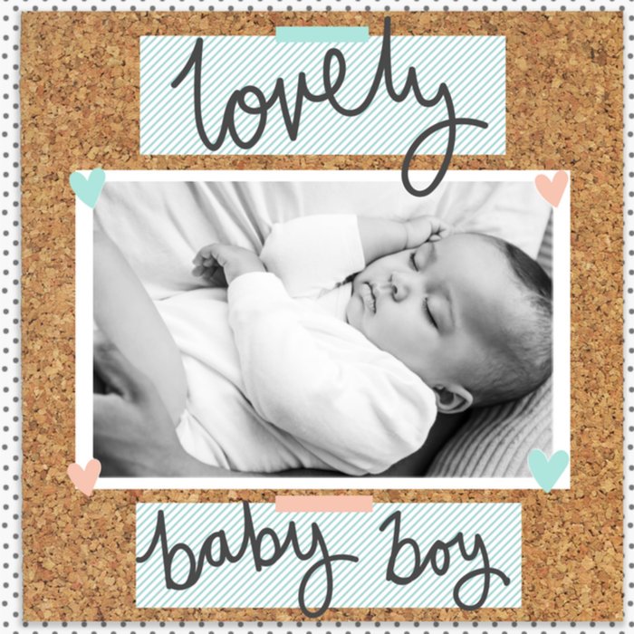Leuke fotokaart voor de geboorte van een lieve babyboy.