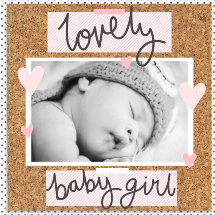 Lief geboorte felicitatiekaartje met foto en de tekst: Lovely baby girl