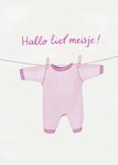 Verras met dit schattige geboortekaart met de tekst "Hallo Lief Meisje!" De kaart is niet aanpasbaar.