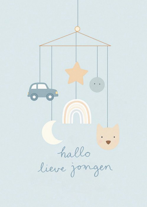 Verras met deze zoet Geboortekaart met de tekst: 'Hallo lieve jongen.'