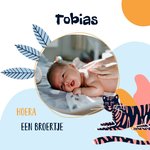 Schattige geboorte kaart met daarop een tijger en de tekst: Hoera een broertje. De naam op de kaart is aanpasbaar. Je kunt een eigen foto toevoegen.